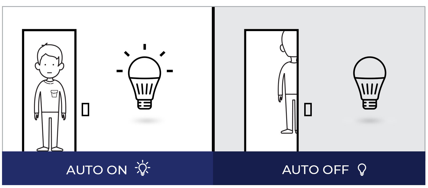 Automatically turn lights on when a room is entered and off when it is left empty, ensuring no energy is wasted on lighting unoccupied spaces.